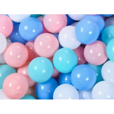 Set de bolas de piscina de 5,5 cm en colores verde, azul y blanco. Libres de BPA, ftalatos y plomo, diseñadas para fomentar la creatividad y el desarrollo motor de los más pequeños.